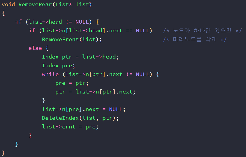 함수 09 RemoveRear - 연결 리스트 맨 뒤 노드 삭제