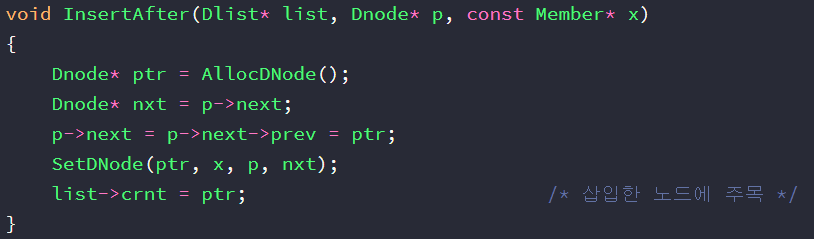 함수 06 InsertAfter - p가 가리키는 노드 바로 다음에 노드 삽입