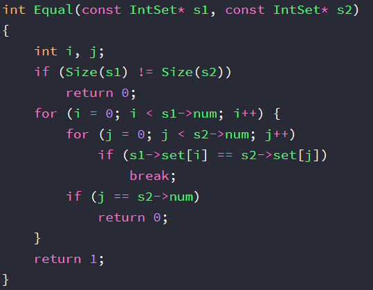 집합 s1과 집합 s2가 동일하다면 1을, 동일하지 않다면 0을 반환합니다.