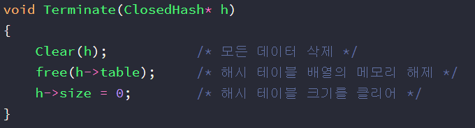 함수 10 Terminate - 해시 테이블 삭제