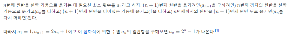 ※ 원판을 옮긴 횟수는 왜 '2 ** n - 1'일까요?