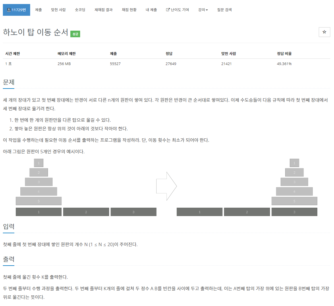 우리의 목표는 1번 봉에 있는 원판들을 모두 3번 봉으로 옮기는 것입니다.