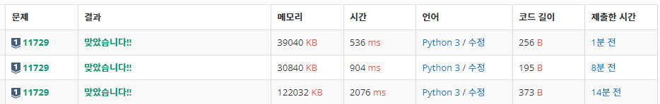 풀이 1의 코드를 보면 print() 함수가 매우 자주 실행됩니다. 입출력 함수는 프로그램 실행 시간을 많이 잡아먹는 주요 범인입니다. 따라서, hanoi 함수 안에 들어있는 print() 함수는 없애고, 대신 문자열을 반환하게끔 해봅시다.