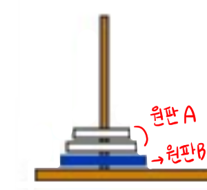 그 원판 B 위에 있는 나머지 원판들을 모조리 묶어서 원판 A, 1개라고 생각하세요.