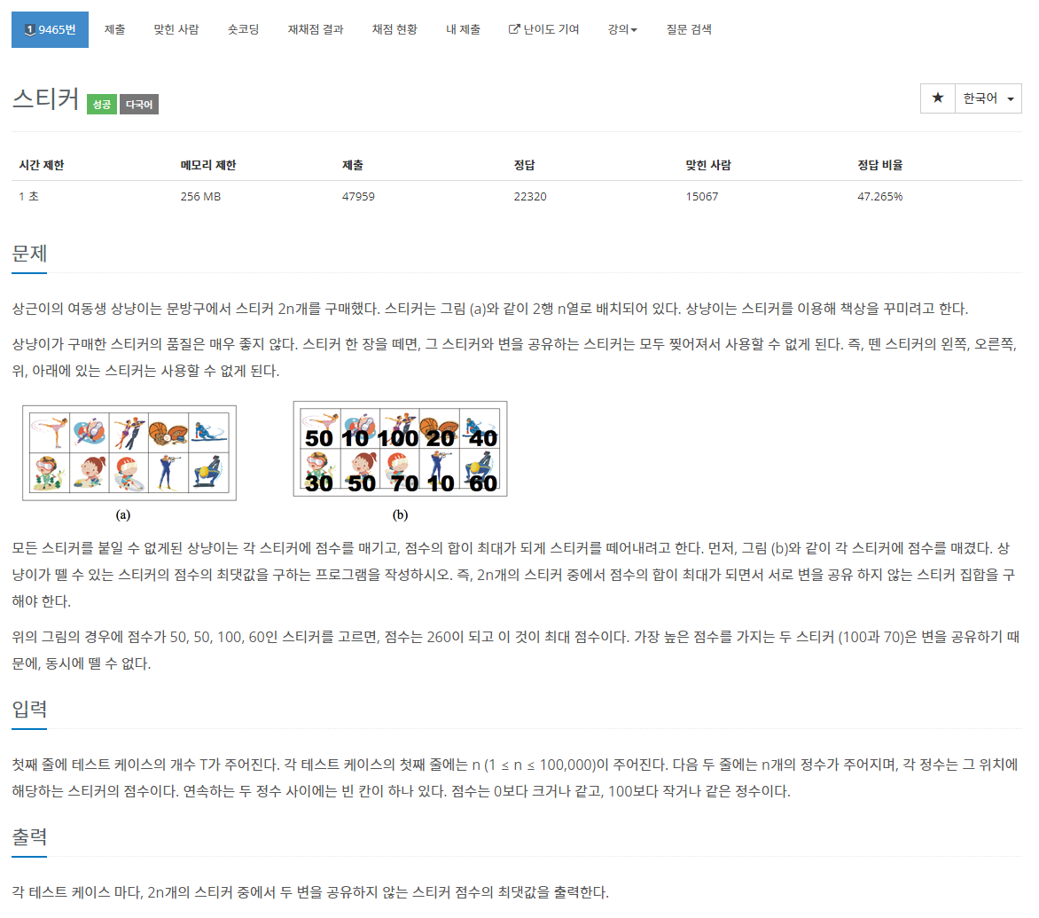 스티커의 점수는 왼쪽과 같이 입력으로 제시되었습니다.