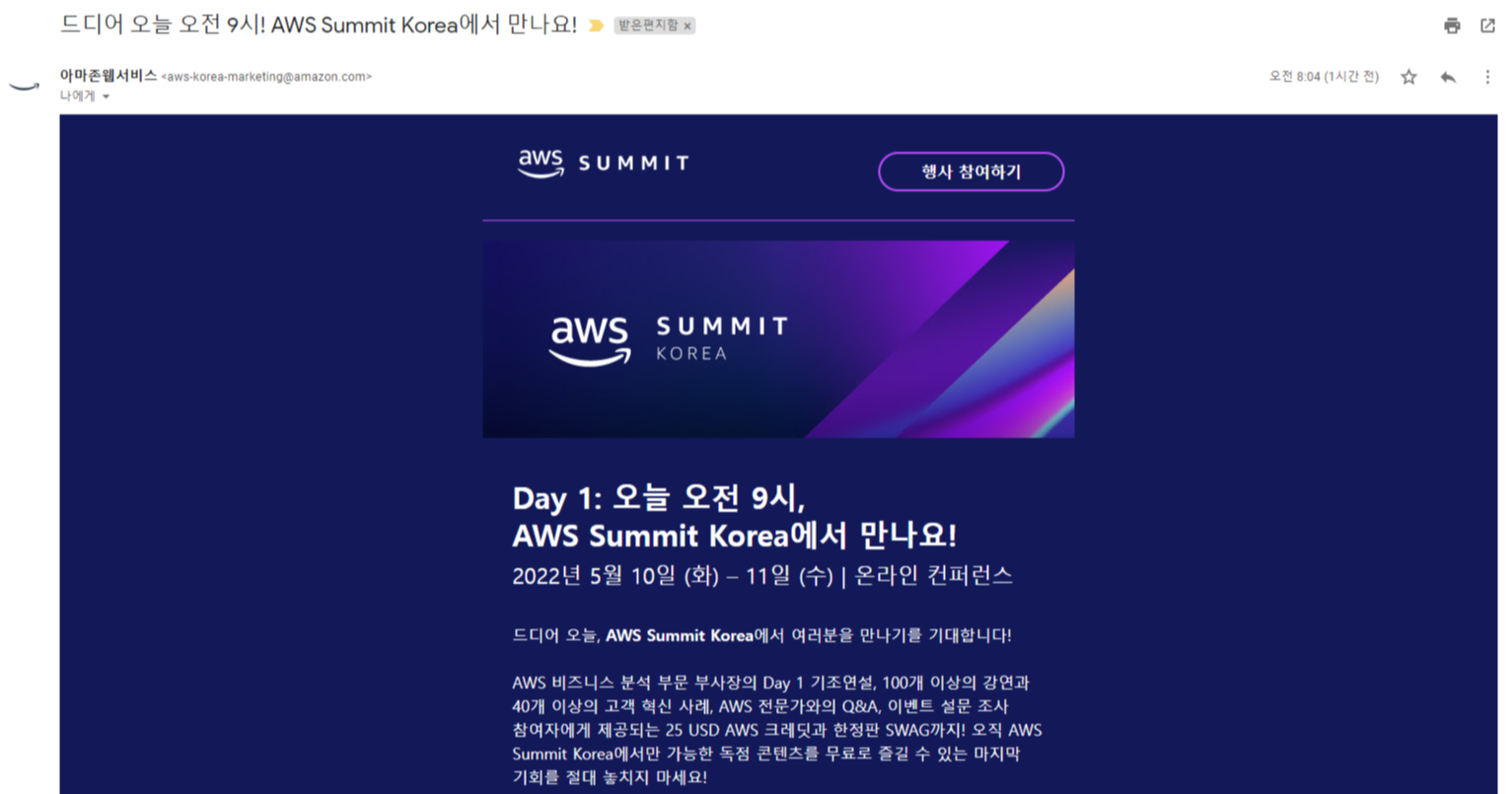 5월 10일 아마존 웹 서비스(AWS) 측에서 AWS Summit Korea를 열었습니다. AWS Summit은 클라우드 관련 컨퍼런스들 중 가장 큰 규모의 컨퍼런스라고도 말할 수 있습니다. 저는 AWS가 무엇인지 간략하게만 알고 있을 뿐, 사용해본 경험도 깊게 공부해본 경험도 없었기 때문에 입문자용 쉬운 강의들을 찾아들으며 AWS를 자세히 알아보는 시간을 가졌습니다.