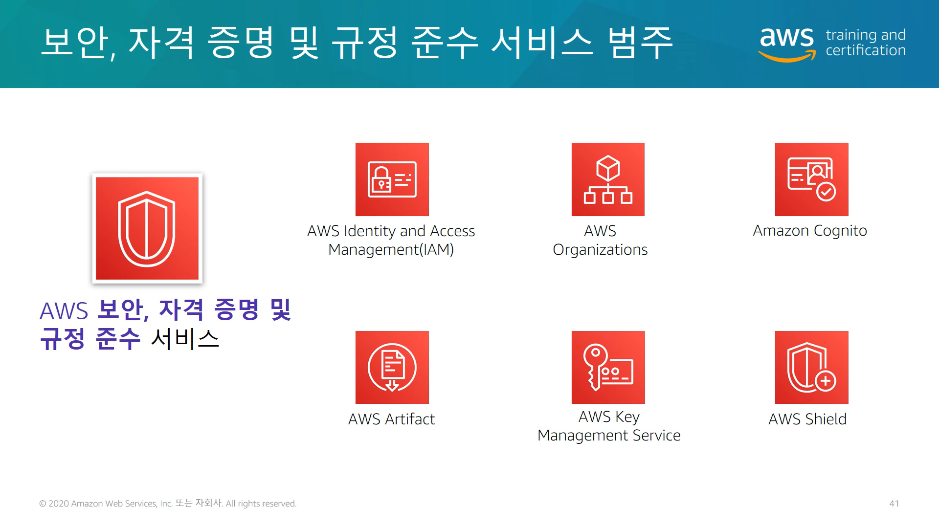| AWS Artifact | AWS 보안 및 규정 준수 보고서 플랫폼 제공 |
