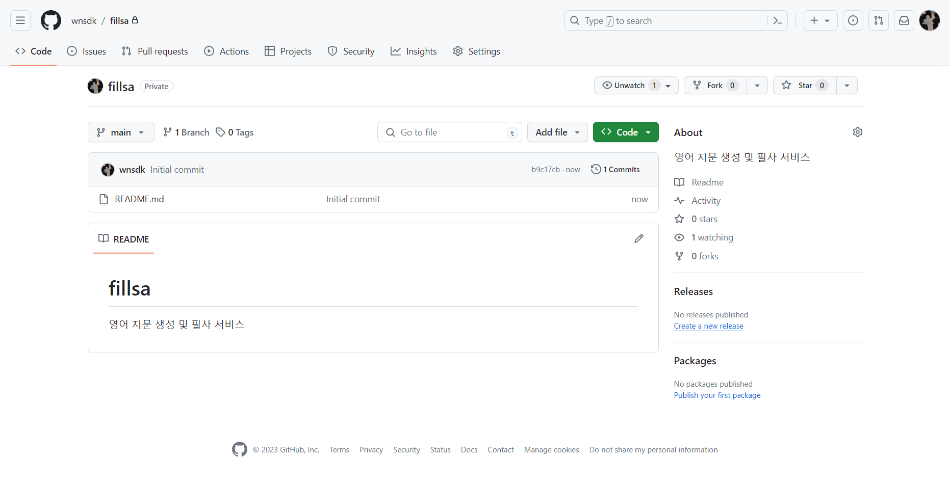 간단하게 README 파일만 추가하여 repo를 생성했다.