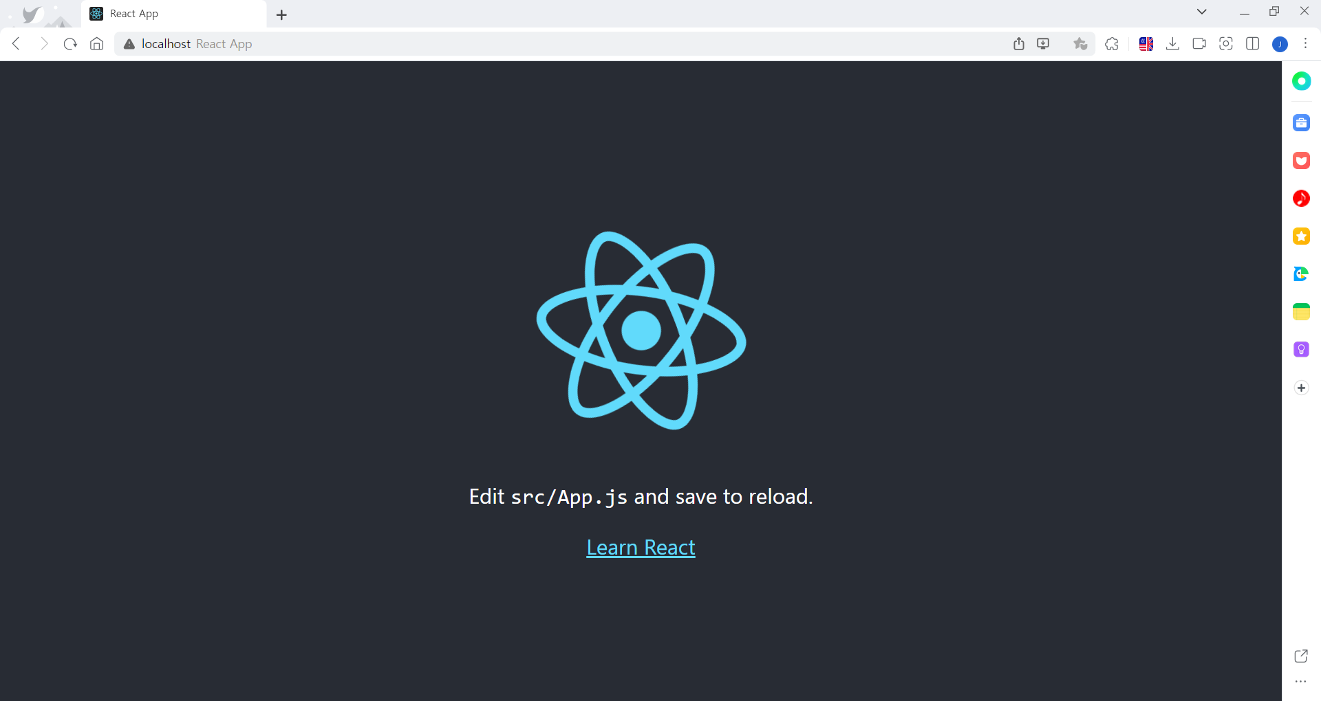 리액트 프로젝트가 정상 실행되는 것을 확인할 수 있다.