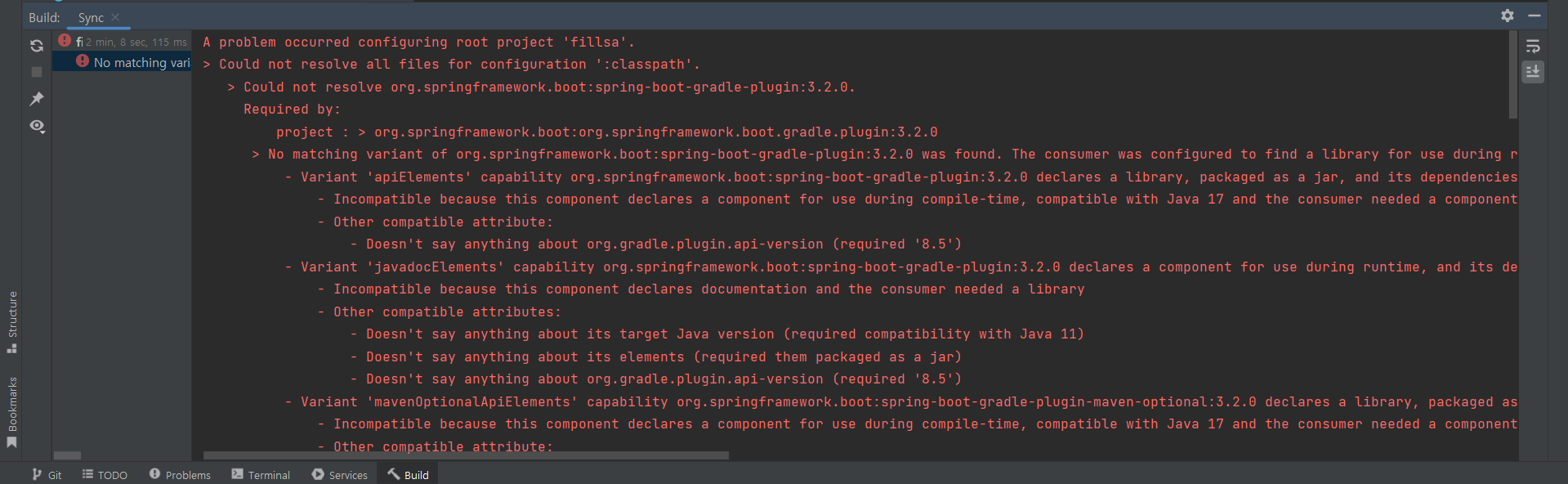 컴퓨터에 java 17이 깔려있지 않아서 에러가 발생했다.