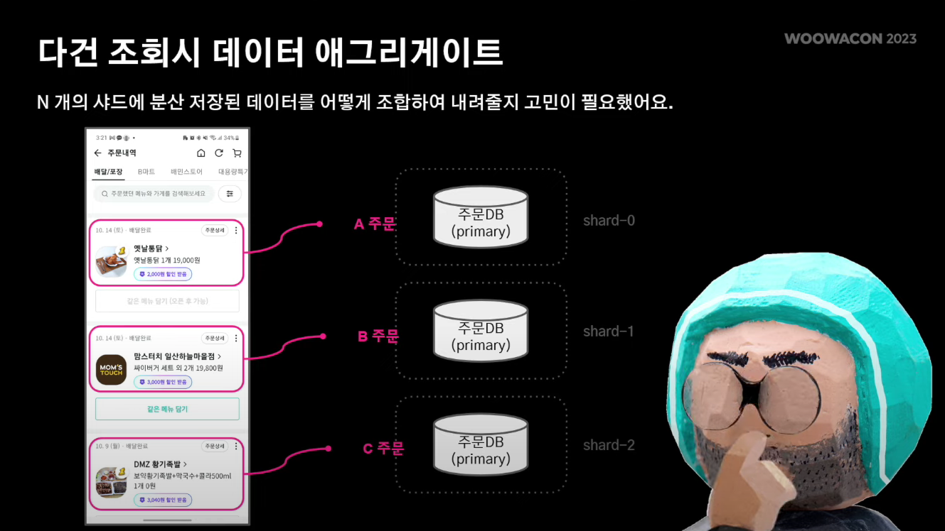 주문 내역을 보여줄 때 각 주문 정보가 n개의 샤드에 분산 저장되어 있기 때문에 다건 조회가 필요했다.