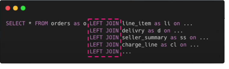 주문내역 하나를 유저에게 보여주기 위해서는 정말 다양한 정보들이 필요하다. (주문정보, 메뉴정보, 결제정보, 배달정보, 가게정보 등)