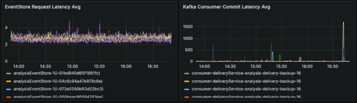 대표적으로 eventstore request latency와 consumer commit latency 지표를 모니터링하고 있다.