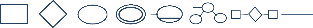 | 사각형 | 마름모 | 타원 | 이중 타원 | 밑줄 타원 | 복수 타원 | 관계 | 선 |